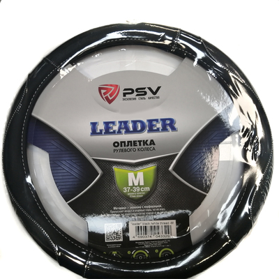 Оплетка руля "PSV" Leader кожа с белой отстрочкой черная (37-39 M)